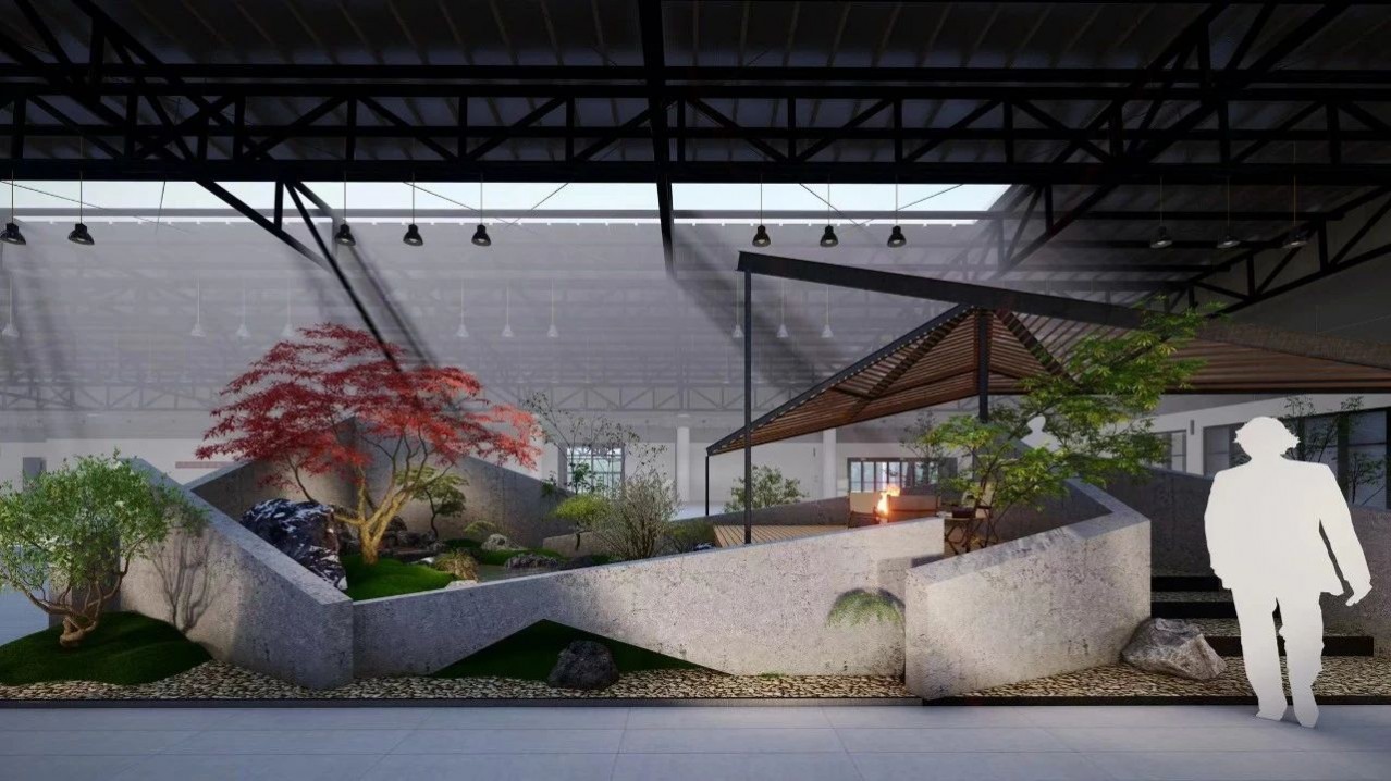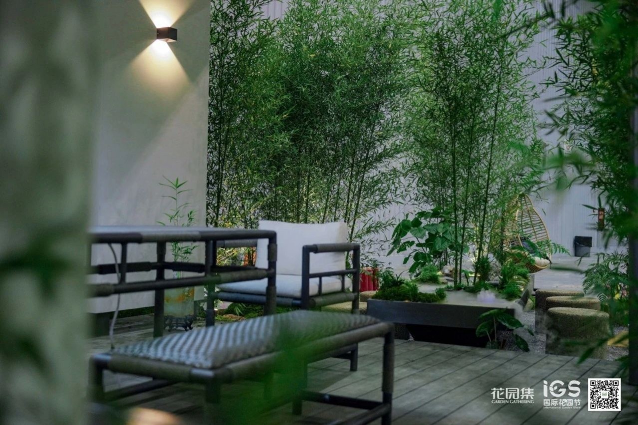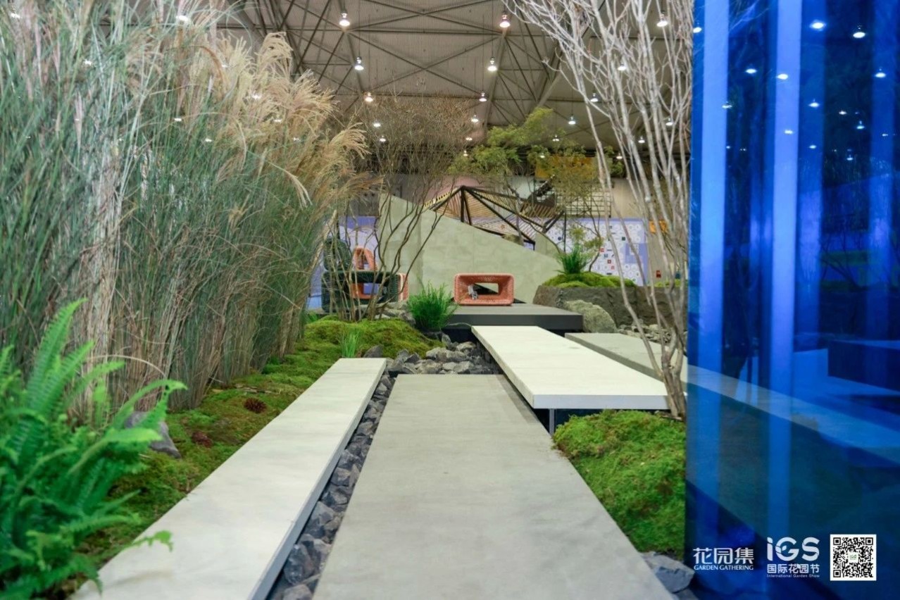 空間承載并展示了休閑、聚會、烤火等庭院常用的三大功能。這樣的展示設計貼近生活,詮釋了花園的生活意義。