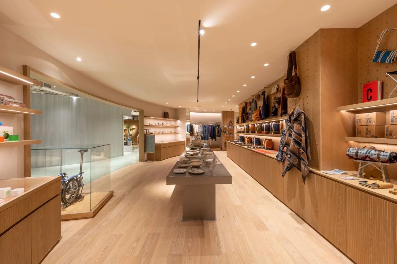 沿著曲折的動(dòng)線繼續(xù)向內(nèi)漫游,活動(dòng)、咖啡、服飾、展覽、家居等功能區(qū)次第出現(xiàn)在眼前,而空間中自然生長的大量綠植讓人宛如置身室外,徜徉于一片綠洲之上。這些富于靈感的巧思,都來自設(shè)計(jì)師青山周平(下簡(jiǎn)稱“青山”)別出心裁的設(shè)計(jì)理念。