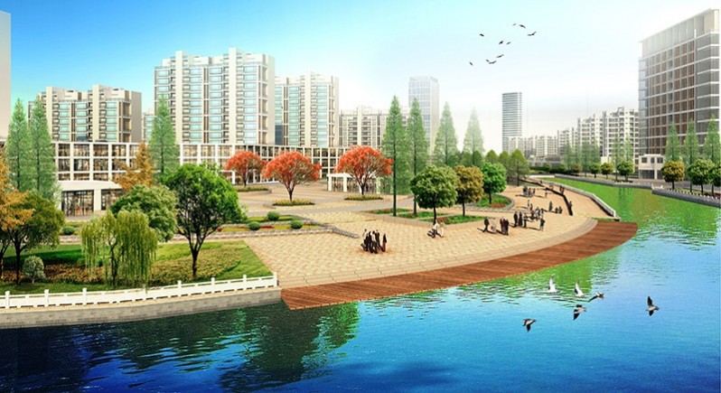 高郵市地處長江三角洲,位于江蘇沿江經(jīng)濟開放帶的北側(cè),京滬高速公路和京杭大運河縱貫全市南北,運河大橋、湖區(qū)漫水公路和高郵、珠湖船連接運河東西。本案地處高郵市興欣路一一洞庭路段,為北關(guān)河二期濱水景觀設(shè)計,北關(guān)河的西北側(cè)多為廠區(qū)和住區(qū),東南多為農(nóng)田。